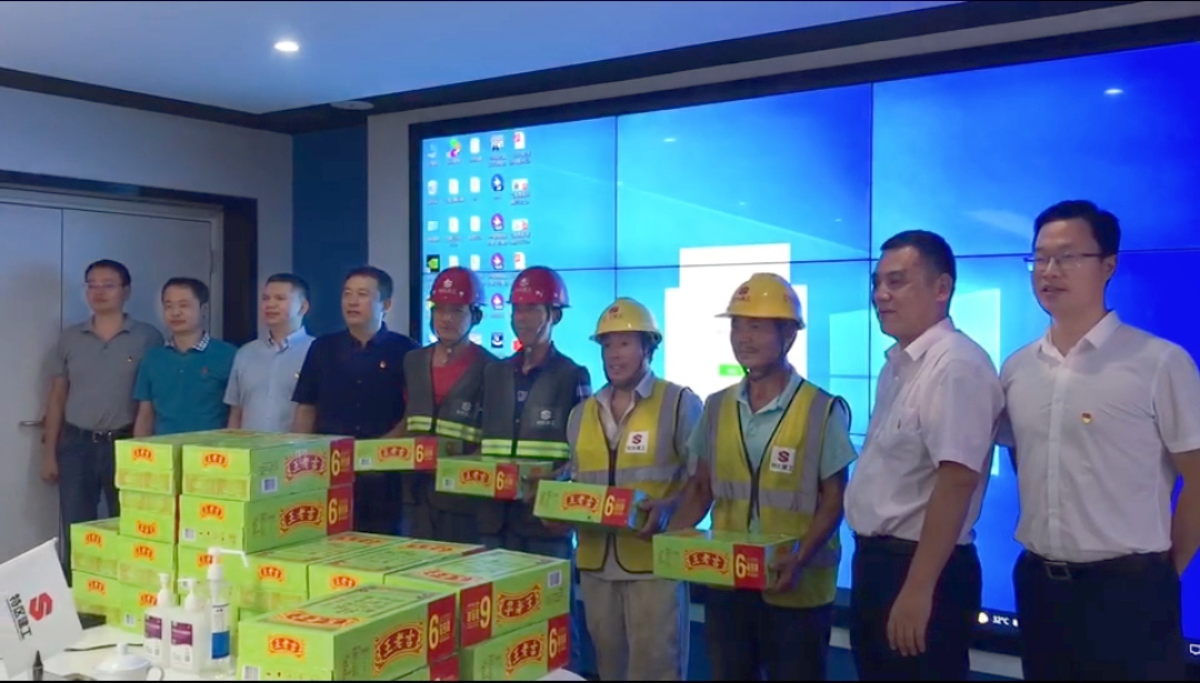 會后,與會領導開展了“學黨史 辦實事 入一線 送清涼”的慰問活動,向高溫天氣中堅守一線崗位的職工表示深切關懷,并紛紛叮囑他們要注意防暑,做好高溫防護措施,同時向優秀的工人代表發出邀請加入建設集團產業化工人隊伍。