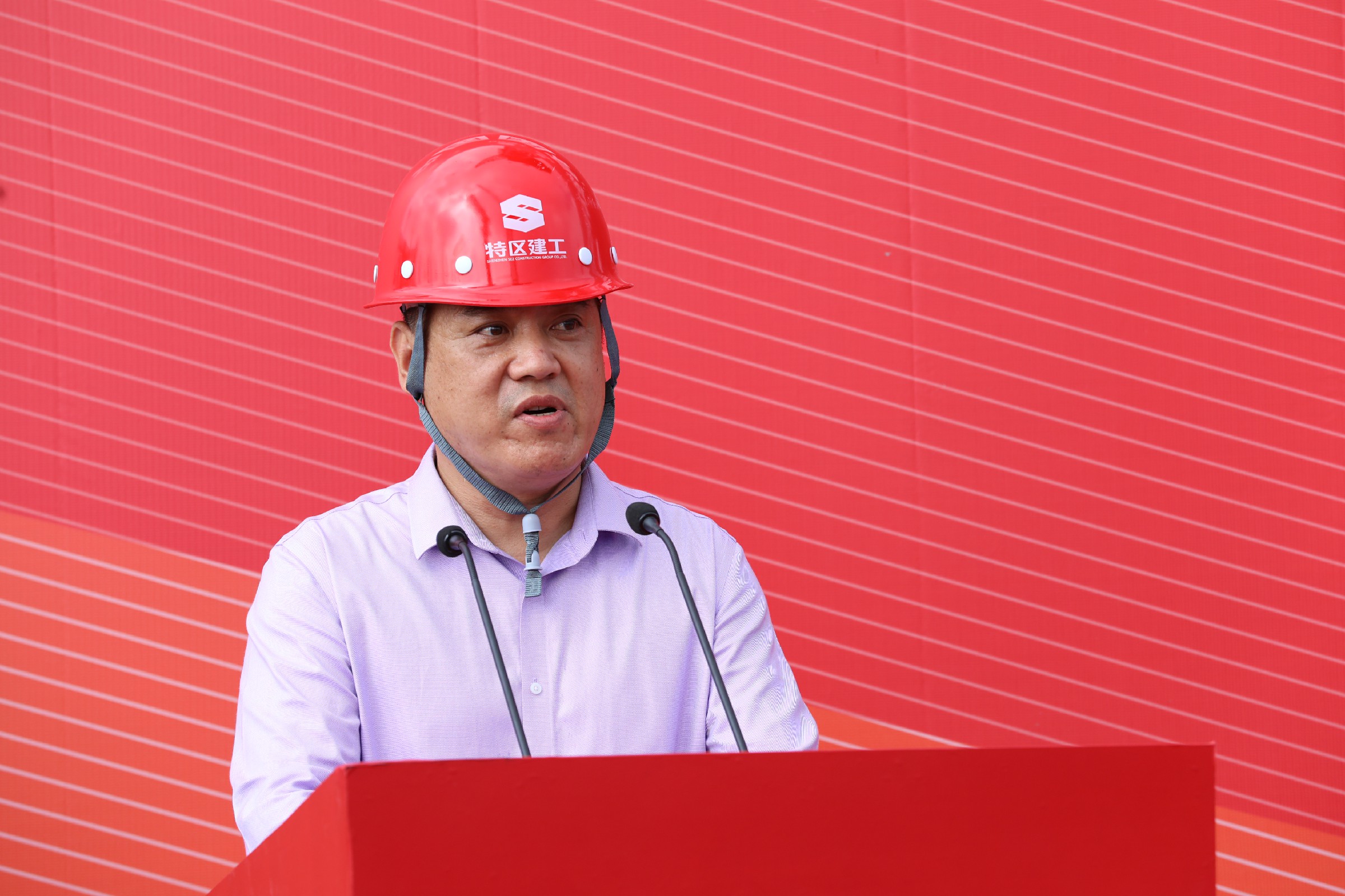 會上,黃海董事長代表建設集團向前來參加封頂儀式的各位領導表示熱烈的歡迎和衷心的感謝。表示項目作為前海標桿項目、國家級基金總部,也是深圳市“重大項目”之一,是公司回歸國企序列以來,首個超高層項目,公司上下高度重視,秉持“建誠信企業、創精品工程”的企業價值觀,嚴格執行“策劃先行、樣板引路、過程控制、一次成優”的管理理念,全面落實管理標準化、精細化、信息化,全面推行技術創新和綠色施工。本項目的順利封頂,標志著工程建設取得階段性勝利,公司將繼續秉承“求實、創新、奮斗、共享”的企業精神,在政府主管單位以及甲方、監理等各相關單位的指導支持下,扎實做好項目后續工作,按照預期打造精品工程,高質量、高標準交付!