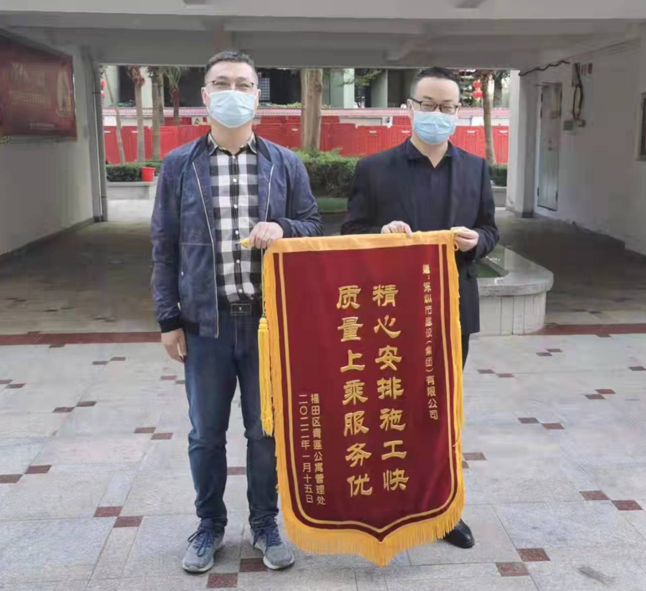 2022年1月21日,福田區(qū)青蓮公寓管理處有關同志向福田區(qū)第七期優(yōu)質(zhì)飲用水入戶工程(第五批)施工總承包項目部贈送“精心安排施工快 質(zhì)量上乘服務優(yōu)”的錦旗,項目經(jīng)理毛浣林代表項目部接受錦旗。此外,本項目施工范圍內(nèi)的部分小區(qū)向其他參建方贈送錦旗。  ...