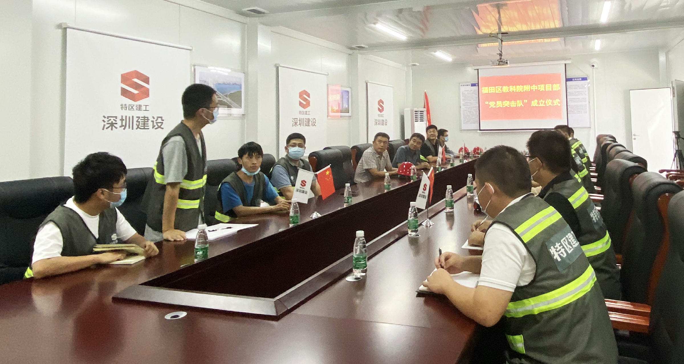 為促進黨建與項目生產相融合,激發一線黨員、青年干事創業熱情,6月28日下午,福田區教科院附中項目舉行了“黨員突擊隊”啟動儀式,建設集團黨總支書記、董事長兼總裁黃海,副書記石宏偉出席儀式。